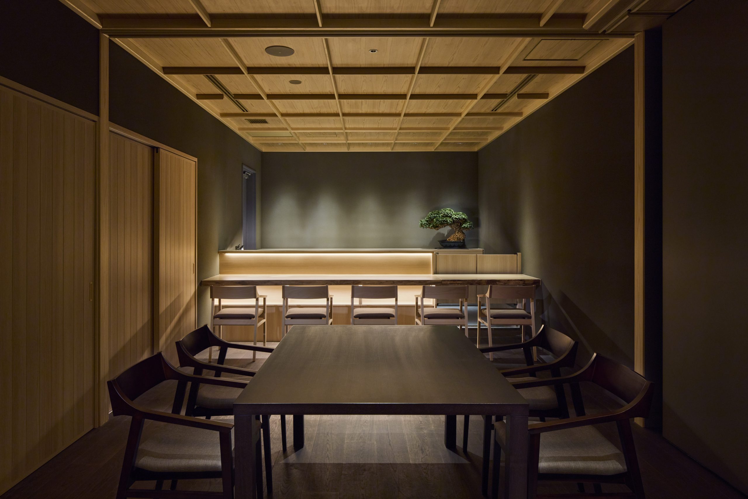 伝統と現代、格式と親しみ、緊張感とくつろぎ。そのすべてが調和する空間で、訪れる人が日本の美しい食文化と真摯に向き合い、心に残る時間を過ごしていただけるように。その想いを空間デザインとして表現しています。